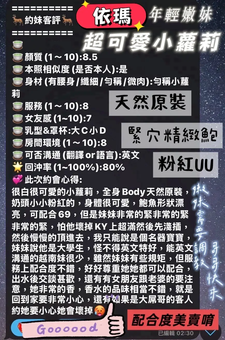 可配合 :奶砲,按摩,69,陪洗,共浴,LG(舌吻)依氣氛衛生而定,可親嘴,無套吹,品鮑,舔蛋,顏射,艷舞秀,自慰秀,快餐,2S,射後清槍