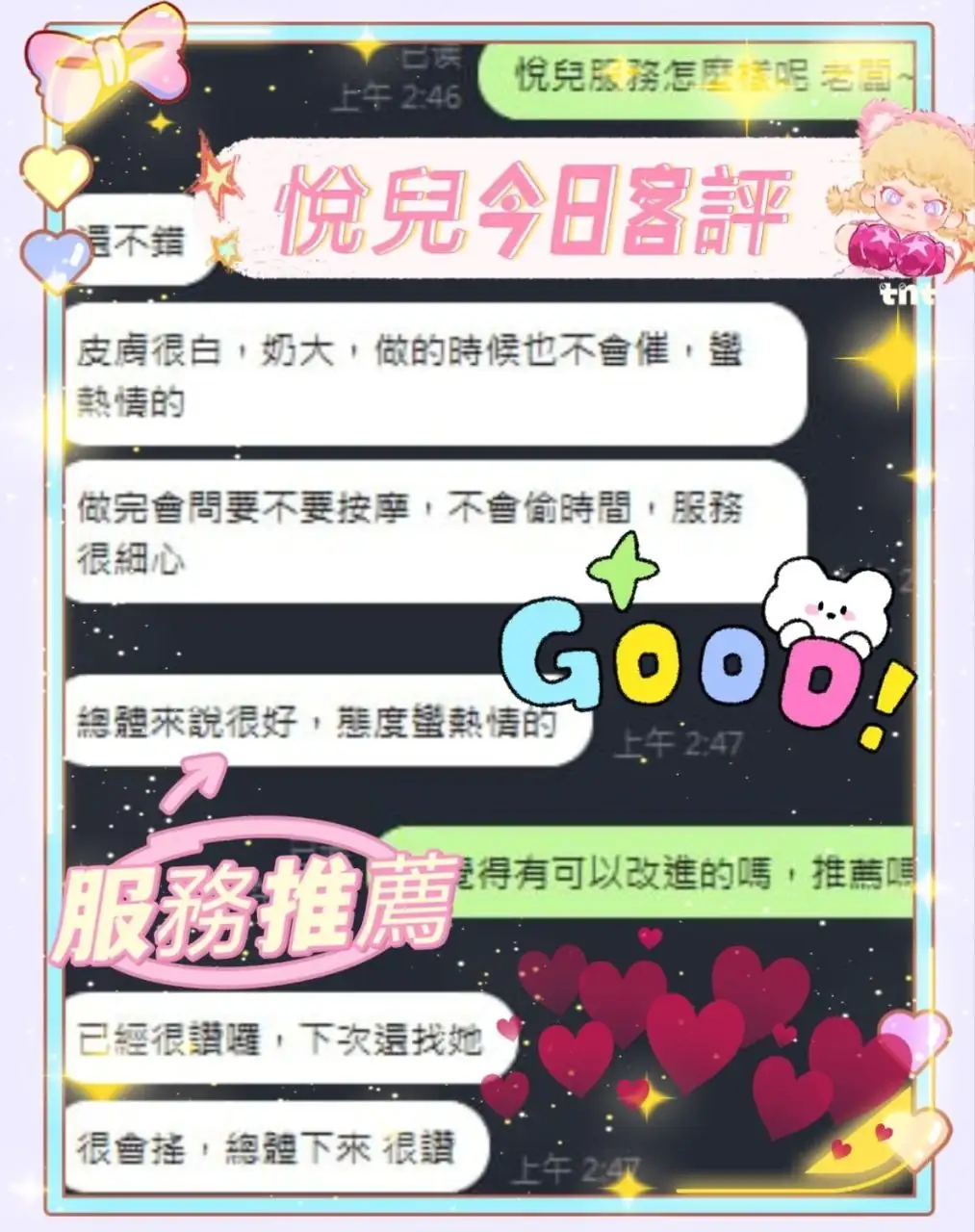 4️⃣見面後確認妹妹滿意後 將現金交給妹妹,即可開始享受服務。