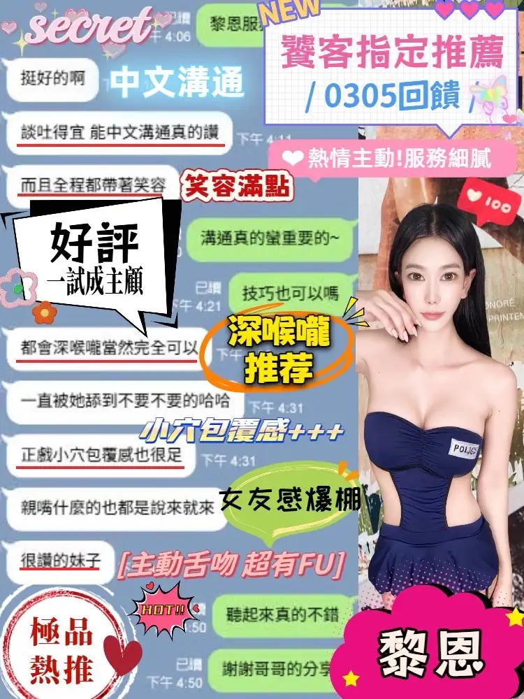 可配合 :奶砲,按摩,69,共浴,LG(舌吻)依氣氛衛生而定,可親嘴,無套吹,口爆,品鮑,舔蛋,奶推,屁推,顏射,浴中蕭,絲襪(自備免付),玩具(按摩棒),玩具(跳蛋),情趣用品(客自備),無套做,無套內射,攝影,中文溝通,快餐,2S,NS,包夜