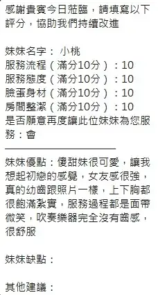 搶先評價 “新竹全套-小桃” 取消回覆