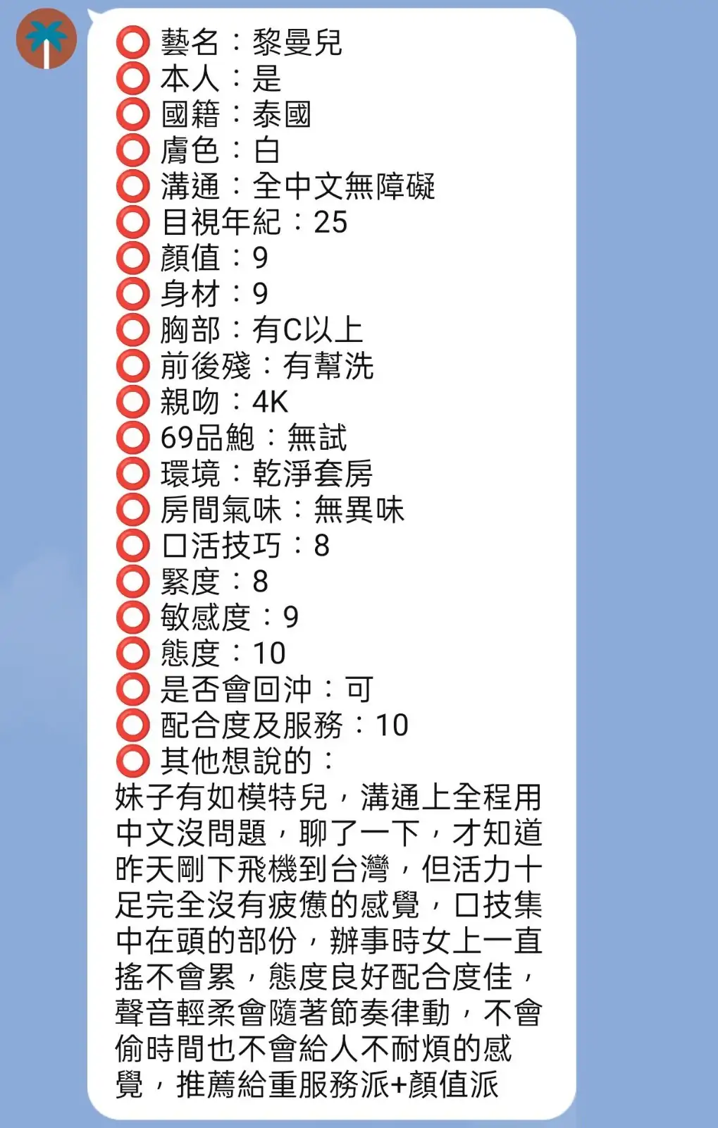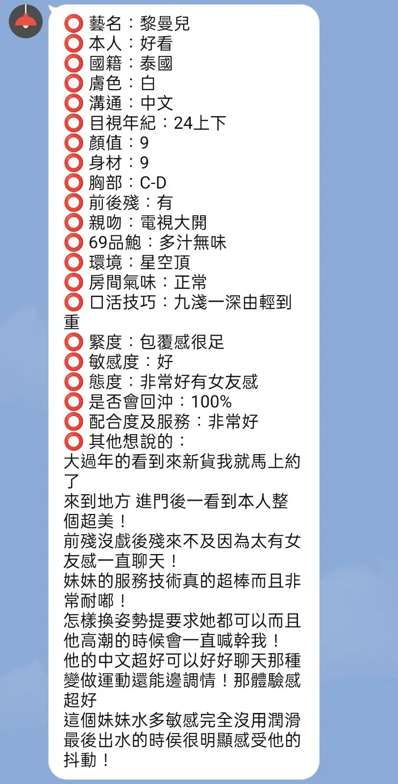 可配合 :按摩,LG(舌吻)依氣氛衛生而定,可親嘴,無套吹,品鮑,舔蛋,顏射,變裝(自備免付),絲襪,中文溝通,快餐,2S