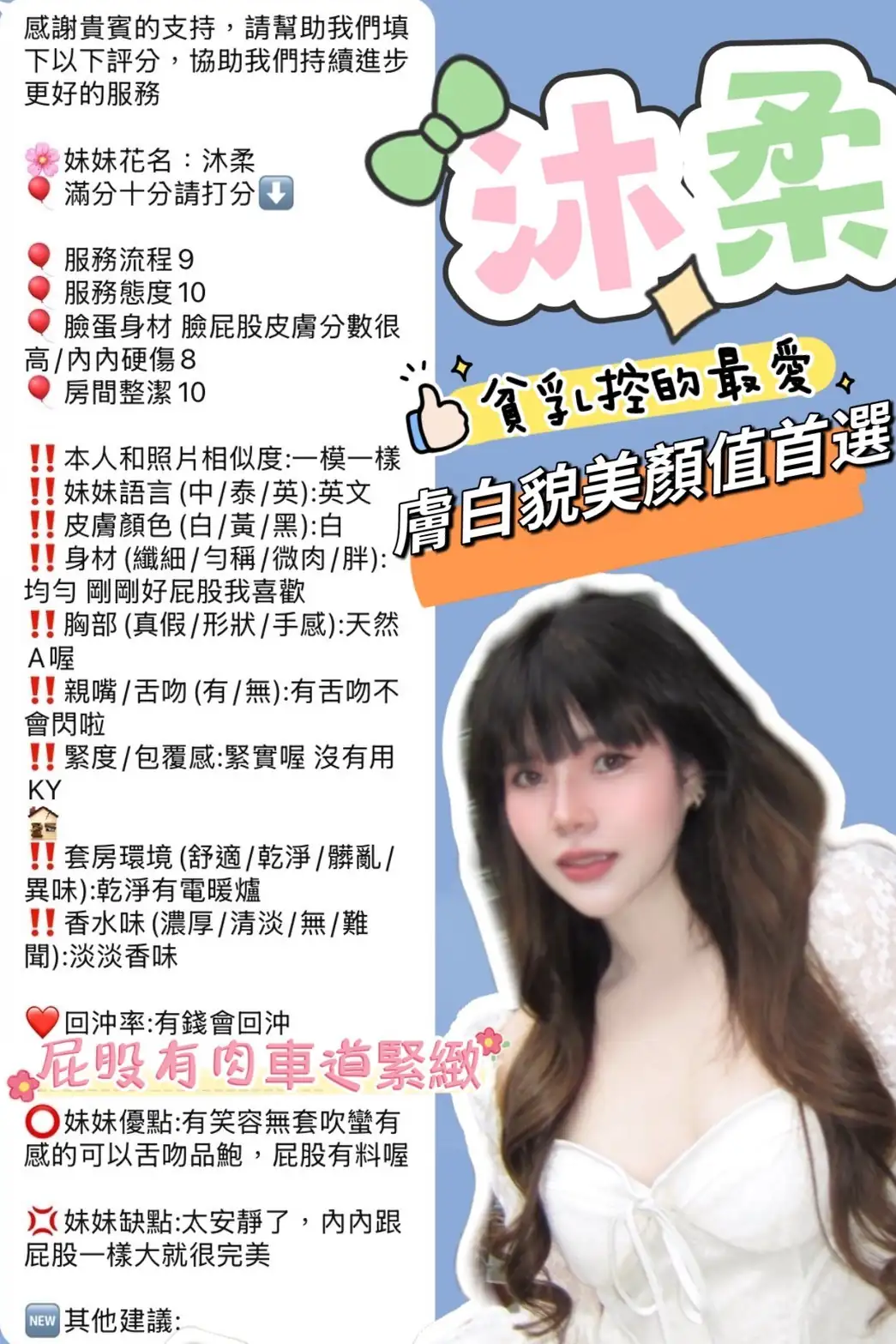 可配合 :奶砲,按摩,69,共浴,LG(舌吻)依氣氛衛生而定,可親嘴,無套吹,口爆,品鮑,舔蛋,奶推,屁推,冰火,顏射,浴中蕭,變裝(自備免付),絲襪(自備免付),自慰秀,攝影,快餐,2S,NS