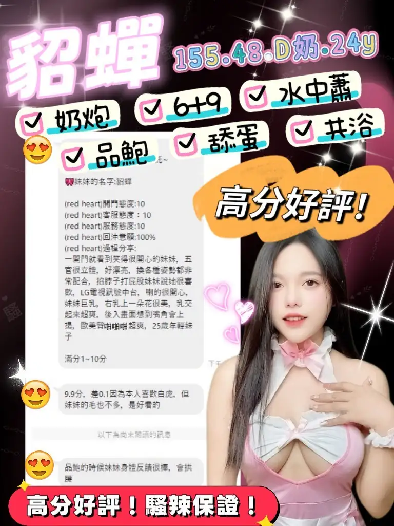 可配合 :奶砲,按摩,69,共浴,LG(舌吻)依氣氛衛生而定,可親嘴,無套吹,品鮑,舔蛋,奶推,屁推,浴中蕭,絲襪,玩具(按摩棒),玩具(跳蛋),快餐,2S