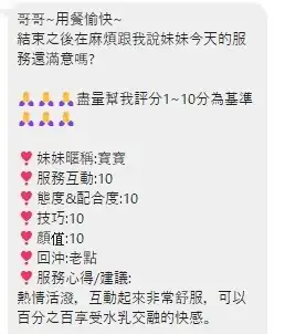 4️⃣見面後確認妹妹滿意後 將現金交給妹妹,即可開始享受服務。