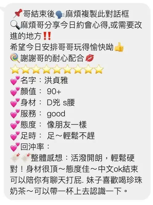 4️⃣見面後確認妹妹滿意後 將現金交給妹妹,即可開始享受服務。