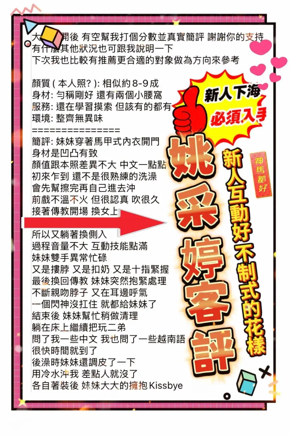 4️⃣見面後確認妹妹滿意後 將現金交給妹妹,即可開始享受服務。