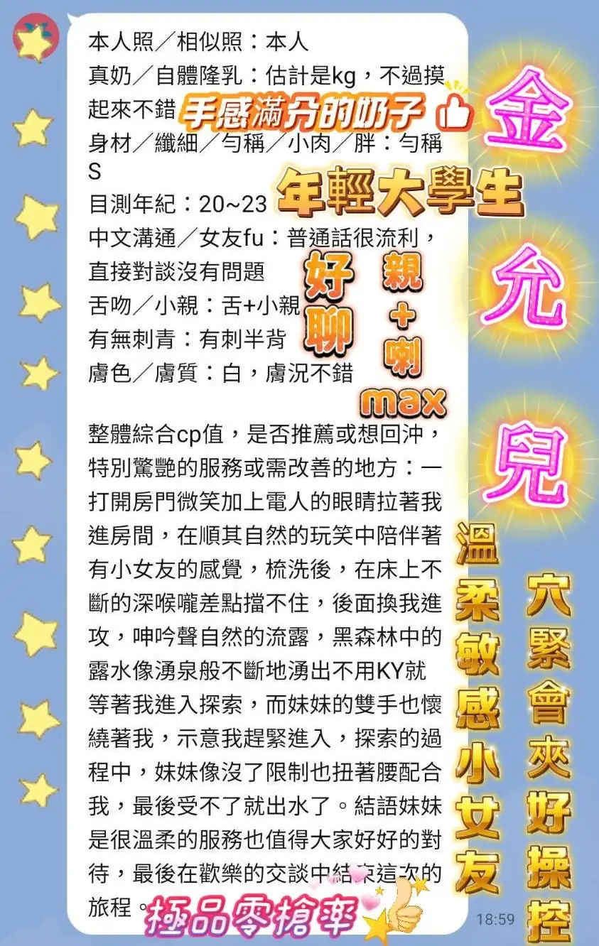 可配合 :奶砲,69,殘廢澡,LG(舌吻)依氣氛衛生而定,可親嘴,無套吹,口爆,舔蛋,漫遊,奶推,冰火,深喉嚨,絲襪(自備免付),自慰秀,快餐,2S,包夜,射後清槍